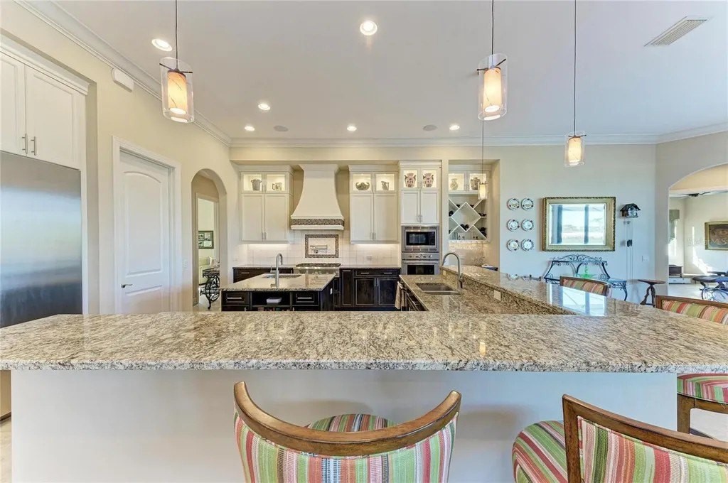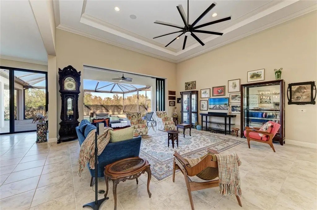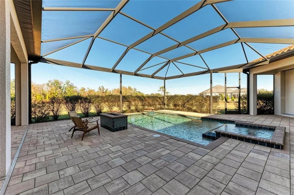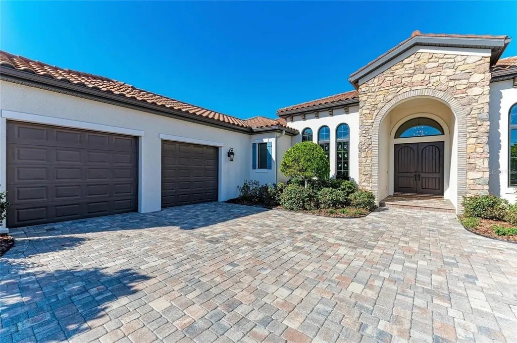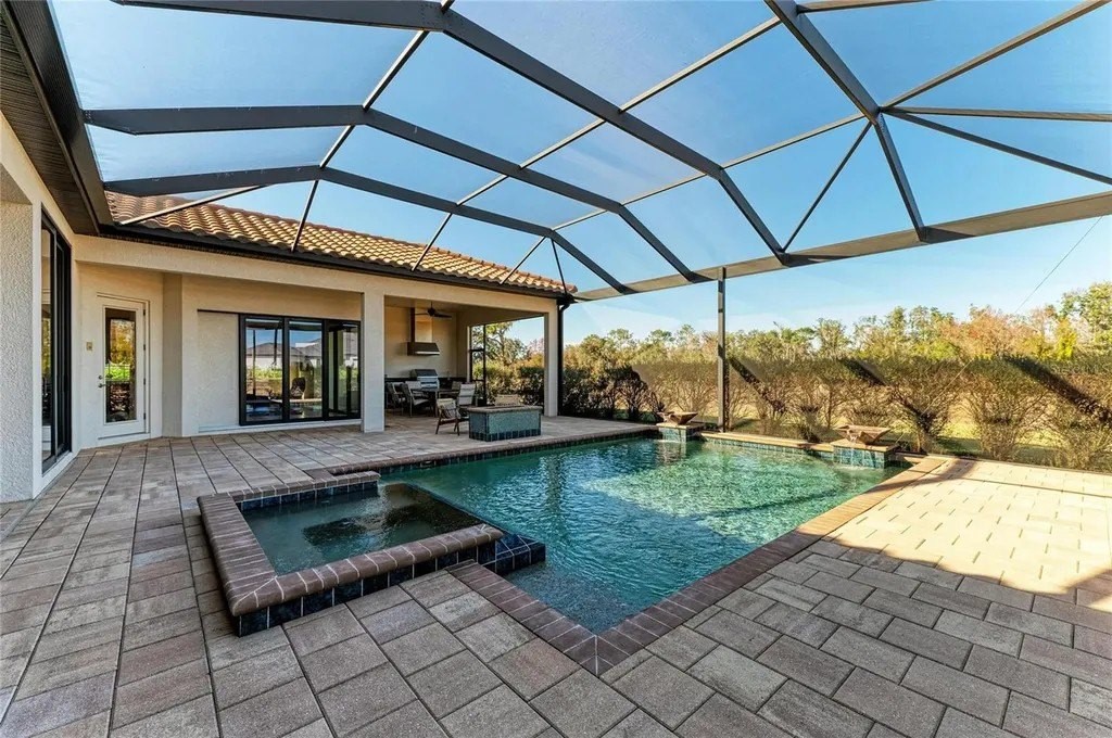 Welcome to your dream home in prestigious Sarasota Ranch Club, where luxury meets tranquility. Nestled on over 10 acres, this stunning John Cannon custom-built residence offers unparalleled privacy. Surrounded by Florida's native trees and natural foliage, making it an ideal setting for equestrian enthusiasts and nature lovers. Imagine waking up to the sight of deer grazing in your backyard and enjoying visits from wild turkeys and sandhill cranes, all while conveniently located near essential amenities. Step inside this Mediterranean-style masterpiece, boasting 3,938 sq. ft. of thoughtfully designed living space. The functional split floor plan seamlessly connects the chef's dream kitchen to the great room and dining area, perfect for entertaining. The kitchen is a culinary haven, featuring 42” cabinetry with soft-close drawers, top-of-the-line Thermador stainless steel appliances, a custom vented hood, and a spacious island. Additional highlights include a wine bar with granite countertops and a wine/beverage cooler, ensuring you have everything you need for hosting gatherings. The home is equipped with impact windows and doors, and a whole-house generator providing peace of mind and security. Step outside to your expansive brick paver screened lanai, where outdoor living reaches new heights. This custom-built space includes an outdoor kitchen, seating and dining areas, and a cozy fire pit. Dive into the heated inground saltwater pool or unwind in the jetted spa, all while enjoying the views of your lush surroundings. The master suite features a recessed tray ceiling with dimmable lights, a ceiling fan, and dual closets. Indulge in the ultimate spa-like experience within the luxurious master bath of this exquisite home. Featuring double vanities (one with a custom 3-way lighted mirror) that provide ample space for your daily routines. The highlight is the expansive two-person tiled step-in shower, perfect for unwinding after a long day. For those who enjoy the outdoors, a private two-person outdoor shower offers a refreshing escape. This master bath is not just a functional space; it is a personal retreat that elevates your everyday living. The thoughtfully designed bonus room adds versatility to this stunning property, allowing you to create a fitness haven, craft sanctuary, or even a future fourth bedroom. Each guest bedroom features custom window treatments, along with easy access to the second and third bath will ensure that your guests feel right at home. Enhance your work-from-home experience with our dual office setup. Practicality meets elegance in the convenient mudroom, which boasts a built-in bench, shelves, and a stylish wood panel design, providing an organized entryway. The laundry room is a dream come true, featuring cabinetry, a built-in ironing board, washer/dryer, and laundry sink for added functionality. Don't forget the 9 x 11 air-conditioned storage room. The oversized two-car garage with a side entry, 220-volt charger for electric car and pull-down stairs, complemented by a separate single-car garage, offers ample storage and parking solutions. Nestled in a beautiful community with a reasonable HOA fee that covers gated entry, common area maintenance, and horse trail upkeep, this meticulously maintained home is a must-see for those seeking luxury and comfort in their next residence while remaining close enough to the premier amenities of Lakewood Ranch and Sarasota. Call today to schedule your private showing.