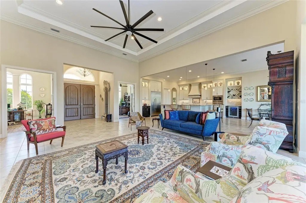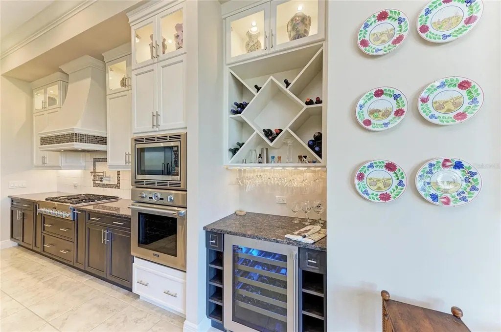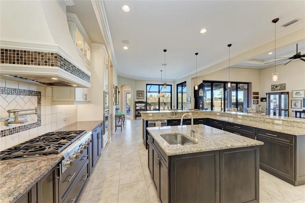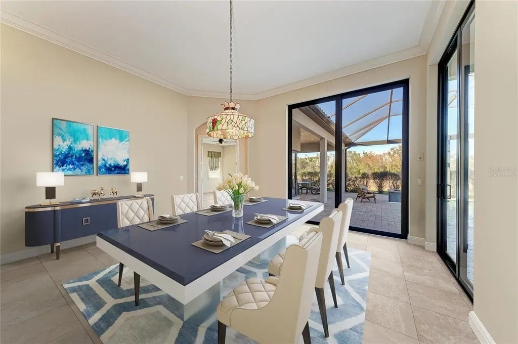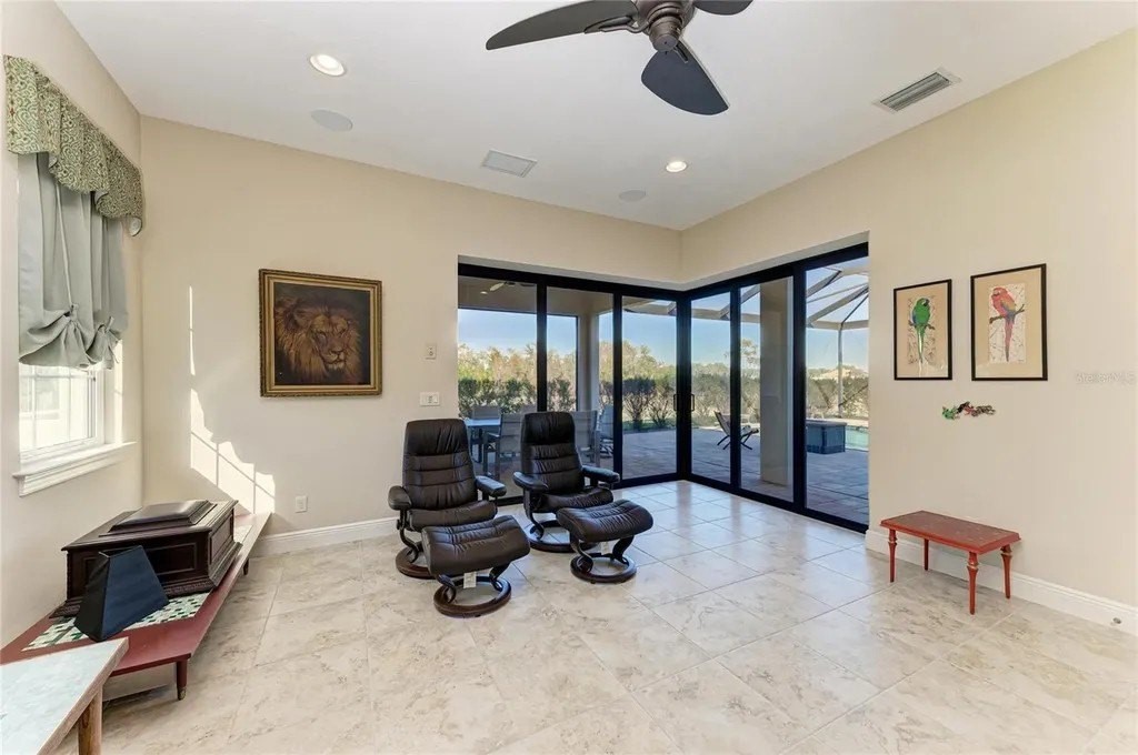 Welcome to your dream home in prestigious Sarasota Ranch Club, where luxury meets tranquility. Nestled on over 10 acres, this stunning John Cannon custom-built residence offers unparalleled privacy. Surrounded by Florida's native trees and natural foliage, making it an ideal setting for equestrian enthusiasts and nature lovers. Imagine waking up to the sight of deer grazing in your backyard and enjoying visits from wild turkeys and sandhill cranes, all while conveniently located near essential amenities. Step inside this Mediterranean-style masterpiece, boasting 3,938 sq. ft. of thoughtfully designed living space. The functional split floor plan seamlessly connects the chef's dream kitchen to the great room and dining area, perfect for entertaining. The kitchen is a culinary haven, featuring 42” cabinetry with soft-close drawers, top-of-the-line Thermador stainless steel appliances, a custom vented hood, and a spacious island. Additional highlights include a wine bar with granite countertops and a wine/beverage cooler, ensuring you have everything you need for hosting gatherings. The home is equipped with impact windows and doors, and a whole-house generator providing peace of mind and security. Step outside to your expansive brick paver screened lanai, where outdoor living reaches new heights. This custom-built space includes an outdoor kitchen, seating and dining areas, and a cozy fire pit. Dive into the heated inground saltwater pool or unwind in the jetted spa, all while enjoying the views of your lush surroundings. The master suite features a recessed tray ceiling with dimmable lights, a ceiling fan, and dual closets. Indulge in the ultimate spa-like experience within the luxurious master bath of this exquisite home. Featuring double vanities (one with a custom 3-way lighted mirror) that provide ample space for your daily routines. The highlight is the expansive two-person tiled step-in shower, perfect for unwinding after a long day. For those who enjoy the outdoors, a private two-person outdoor shower offers a refreshing escape. This master bath is not just a functional space; it is a personal retreat that elevates your everyday living. The thoughtfully designed bonus room adds versatility to this stunning property, allowing you to create a fitness haven, craft sanctuary, or even a future fourth bedroom. Each guest bedroom features custom window treatments, along with easy access to the second and third bath will ensure that your guests feel right at home. Enhance your work-from-home experience with our dual office setup. Practicality meets elegance in the convenient mudroom, which boasts a built-in bench, shelves, and a stylish wood panel design, providing an organized entryway. The laundry room is a dream come true, featuring cabinetry, a built-in ironing board, washer/dryer, and laundry sink for added functionality. Don't forget the 9 x 11 air-conditioned storage room. The oversized two-car garage with a side entry, 220-volt charger for electric car and pull-down stairs, complemented by a separate single-car garage, offers ample storage and parking solutions. Nestled in a beautiful community with a reasonable HOA fee that covers gated entry, common area maintenance, and horse trail upkeep, this meticulously maintained home is a must-see for those seeking luxury and comfort in their next residence while remaining close enough to the premier amenities of Lakewood Ranch and Sarasota. Call today to schedule your private showing.